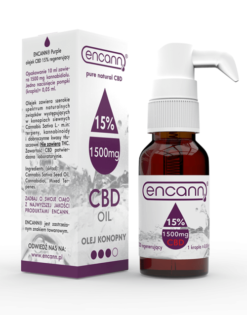 Encann® Purple 15% CBD Öl 10 ml Vollspektrum Encann® Purple 15% Vollspektrum enthält eine breite Palette von natürlichen Verbindungen aus der Pflanze Cannabis sativa L.- einschließlich Terpene , Cannabinoide und nützliche Fettsäuren . Enthält kein THC. Enthält ca. 1500mg CBD / 10ml (siehe Analysezertifikat) 10 ml dieses schmackhaften und regenerativen Öls enthalten 1500 mg Cannabidiol . Ein einzelner Pumpstoß entspricht 0,05 ml, der 7,5 mg CBD enthält. Die Gesamtzahl der Tropfen in der 10-ml-Flasche beträgt 200 . Enthält nachweislich keine Schwermetalle (siehe Zertifikat) Enhält nachweislich die für den Entourage Effekt nötigen Terpene (siehe Zertifikat) Hinweise zum Gebrauch Verwenden Sie dieses CBD Öl bei angezeigten Beschwerden. Die Dosierung liegt im eigenen Ermessen. Da CBD kein Medikament, sondern ein Nahrungsergänzungsmittel ist, können wir aus rechtlichen Gründen keine Angaben zu Dosierungen und Beschwerden machen. Aus Erfahrung und durch Rückmeldungen unserer Kunden wissen wir aber, dass CBD Tropfen mit einer kleiner Dosierung, etwa 3 x 3 Tropfen, eingenommen werden sollten. Die Dosierung kann dann je nach Bedarf höher oder niedriger ausfallen. Dosieren Sie am besten bis einem Punkt, an dem eine Verbesserung eingetreten ist. Eine Auflistung möglicher Anwendungsgebiete finden Sie auf der rechten Seite unter dem Menüpunkt „Ziele“. Sollten Sie Fragen zum Produkt haben, schreiben Sie uns eine Mail oder rufen Sie uns an. Das Etikett ist derzeit noch in englischer und polnischer Sprache, demnächst aber auf Deutsch.